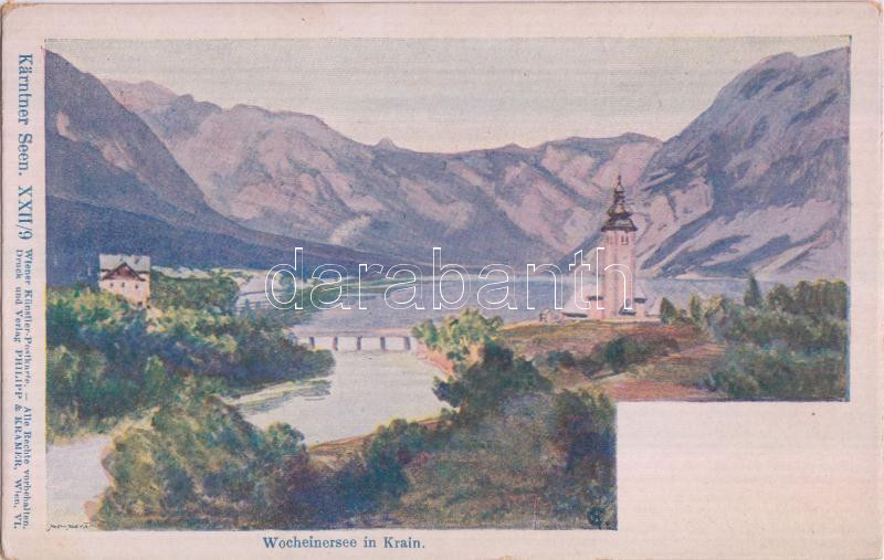 Beschreibung: Bohinjsko jezero, Wocheinersee in Krain; Kärtner Seens XXII/9. Wiener Künstler-Postkarte, Philipp & Kramer