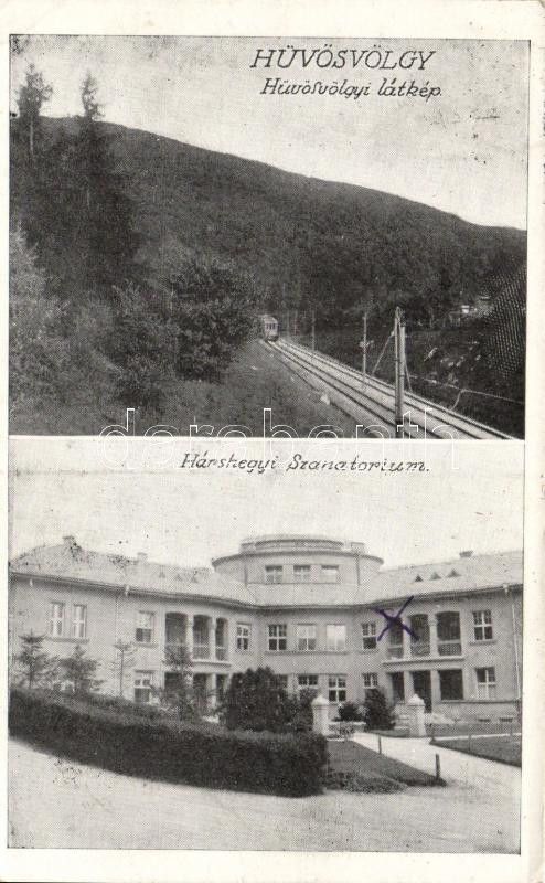 Budapest II. Hűvösvölgy, villamospálya, Hárshegyi szanatórium https://www.darabanth.com/de/203-Fernauktion/203.0/Ansichtskarten/Ungarn~400007/Budapest-II-Huvosvolgy-villamospalya-Harshegyi-szanatorium~II757527