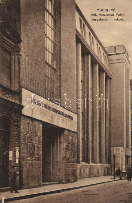 Budapest VIII. Vass utca, Községi Felső Kereskedelmi Iskola, hátoldalo... https://www.darabanth.com/de/203-Fernauktion/203.0/Ansichtskarten/Ungarn~400007/Budapest-VIII-Vass-utca-Kozsegi-Felso-Kereskedelmi-Iskola-hatoldalon-Ecker-Kalman-reklamja~II810906