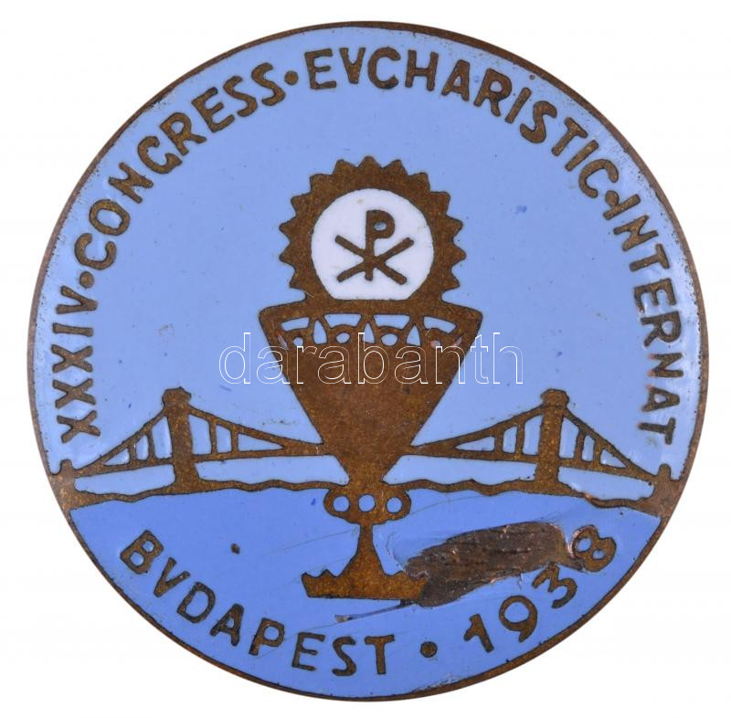 1938. "XXXIV. Eucharisztikus Világkongresszus" zománcozott Br gomblyukjelvény T:2