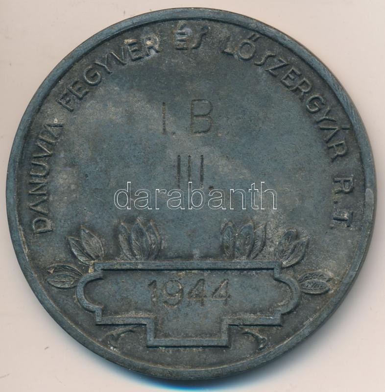 1944. "Danuvia Fegyver és Lőszergyár R.T. / I. B III." fém díjérem (59mm) T:2-