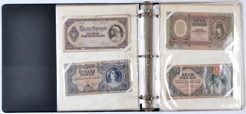 ~130db vegyes bankjegy tétel gyűrűs albumba rendezve, főleg magyar pengő bankjegek, némelyik névértékből több darab is, közte UNC,Au darabok is T:vegyes
