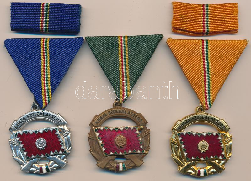 1964. "A Haza szolgálatáért Emlékérem" arany, ezüst és bronz... https://www.darabanth.com/de/203-Fernauktion/203.0/Numismatik/Militaria~16/1964-A-Haza-szolgalataert-Emlekerem-arany-ezust-es-bronz-fokozata--szalagsavval-eredeti~II809680