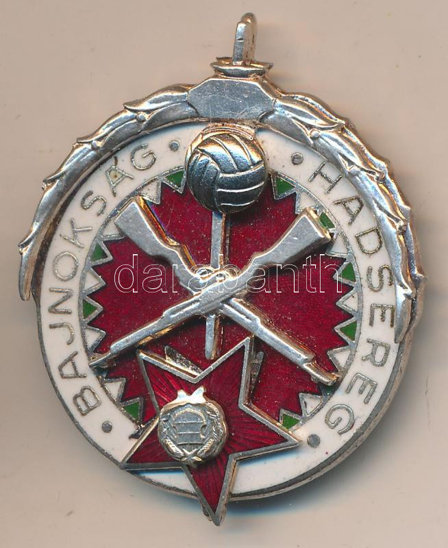 ~1970. Hadsereg Bajnokság ezüst fokozat, zománcozott ezüstözött jelvén... https://www.darabanth.com/de/203-Fernauktion/203.0/Numismatik/Militaria~16/7E1970-Hadsereg-Bajnoksag-ezust-fokozat-zomancozott-ezustozott-jelveny-T1~II809985