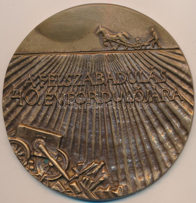 1985. "A Felszabadulás 40. évfordulójára" nagyalakú Br emlék... https://www.darabanth.com/de/203-Fernauktion/203.0/Numismatik/Ungarische-Edelmetall-Gedenkmunzen~10/1985-A-Felszabadulas-40-evfordulojara-nagyalaku-Br-emlekerem-95mm-disztokban-T1~II805697