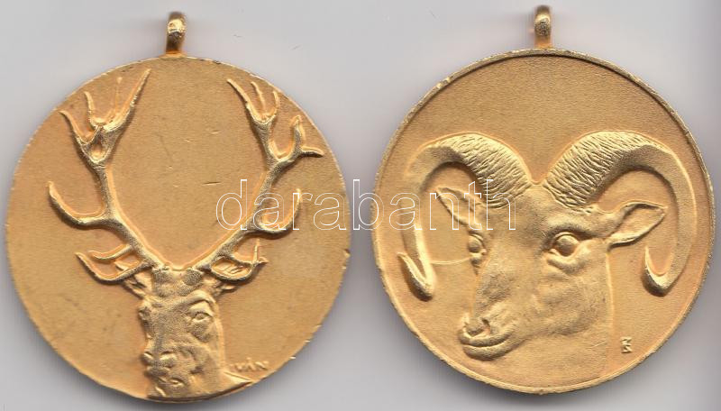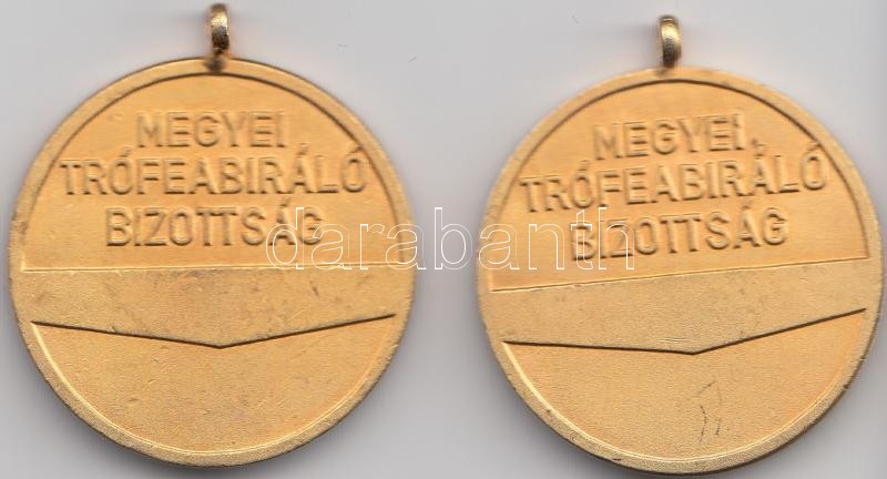 Beschreibung: Iván István (1905-1968) "Megyei Trófeabíráló Bizottság" aranyozott emlékérem (40mm) + "Megyei Trófeabíráló Bizottság" aranyozott emlékérem szign.:EK? T:2