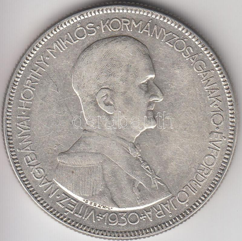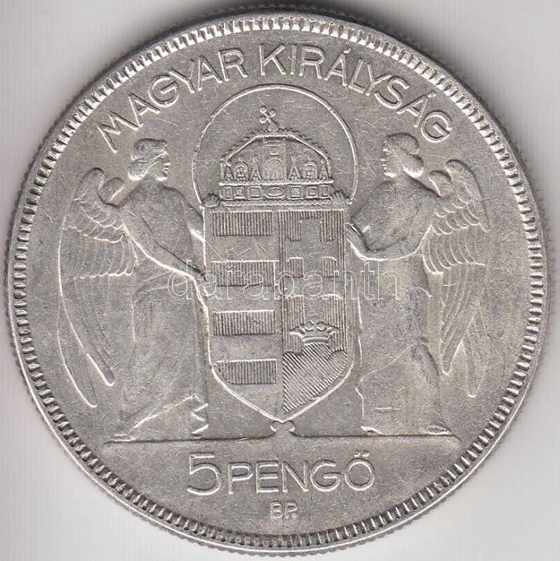 Beschreibung: 1930. 5P Ag "Horthy-jobbra" T:3
