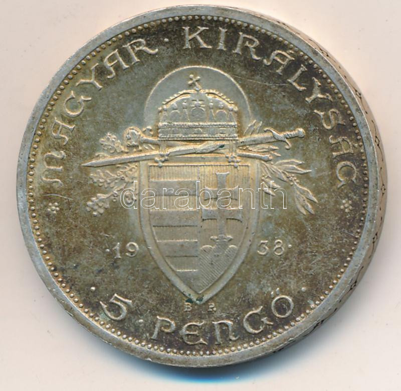 Beschreibung: 1938. 5P Ag "Szent István" T:2-