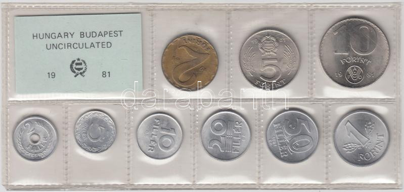1981. 2f-10Ft 9db klf érmés forgalmi sor fóliatokban T:1 https://www.darabanth.com/de/203-Fernauktion/203.0/Numismatik/Ungarische-Munzen~9/1981-2f-10Ft-9db-klf-ermes-forgalmi-sor-foliatokban-T1~II807683