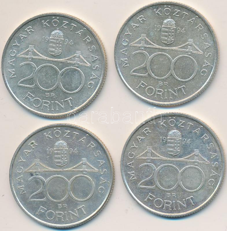 1994. 200Ft Ag "Deák" (4x) T:2-,3 https://www.darabanth.com/de/203-Fernauktion/203.0/Numismatik/Ungarische-Munzen~9/1994-200Ft-Ag-Deak-4x-T2-3~II807742