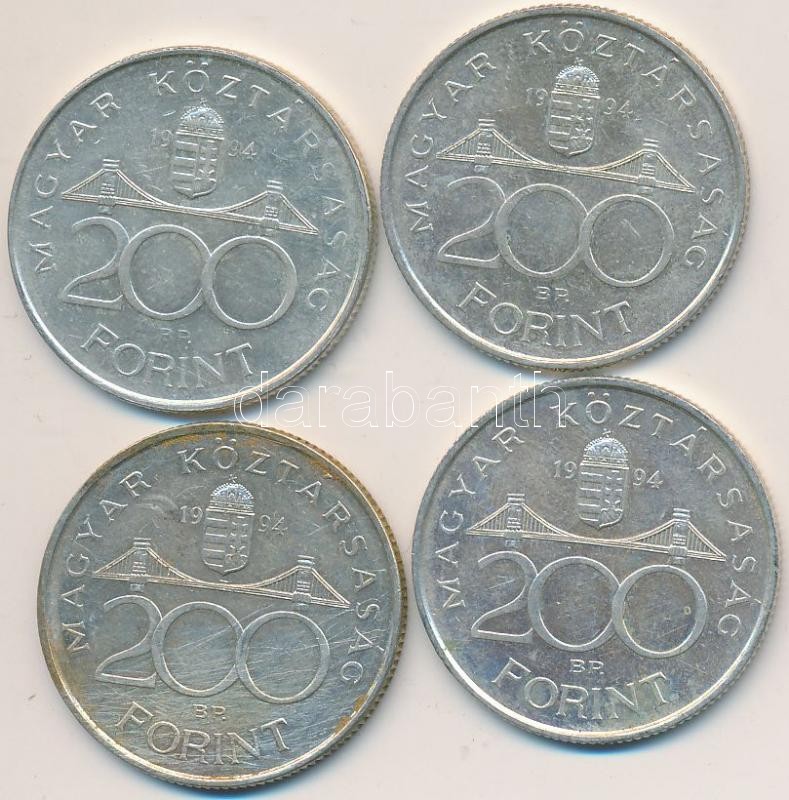 1994. 200Ft Ag "Deák" (4x) T:2-,3 https://www.darabanth.com/de/203-Fernauktion/203.0/Numismatik/Ungarische-Munzen~9/1994-200Ft-Ag-Deak-4x-T2-3~II807743