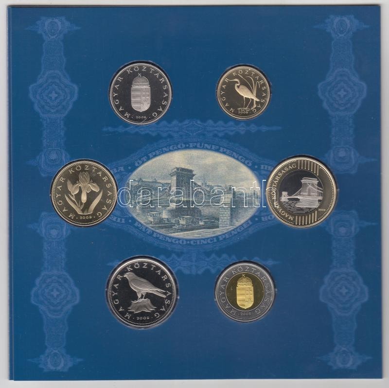 2009. 5Ft-200Ft "Lánchíd" 6klf darabból álló forgalmi érme sor dísztokban T:PP Csak 5000db!