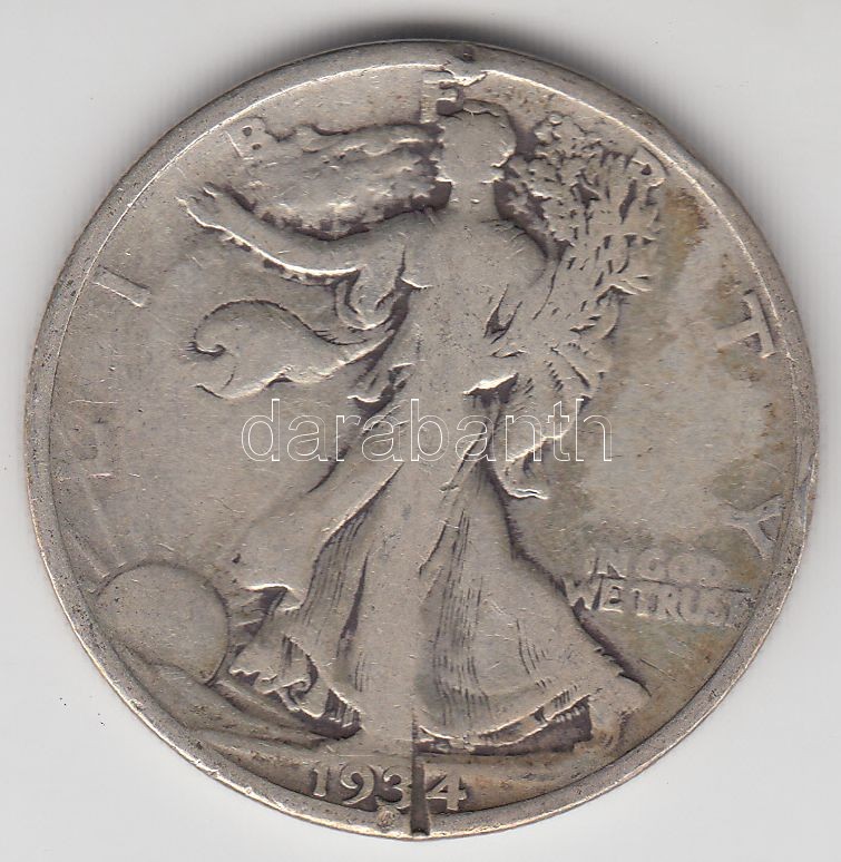 Amerikai Egyesült Államok 1934. 1/2$ Ag "Walking Liberty" T:... https://www.darabanth.com/de/203-Fernauktion/203.0/Numismatik/Weltweit-Munzen~13/Amerikai-Egyesult-Allamok-1934-12USD-Ag-Walking-Liberty-T3--3Cbr3EUSA-1934-12USD-Ag-Walking-Lib~II806169