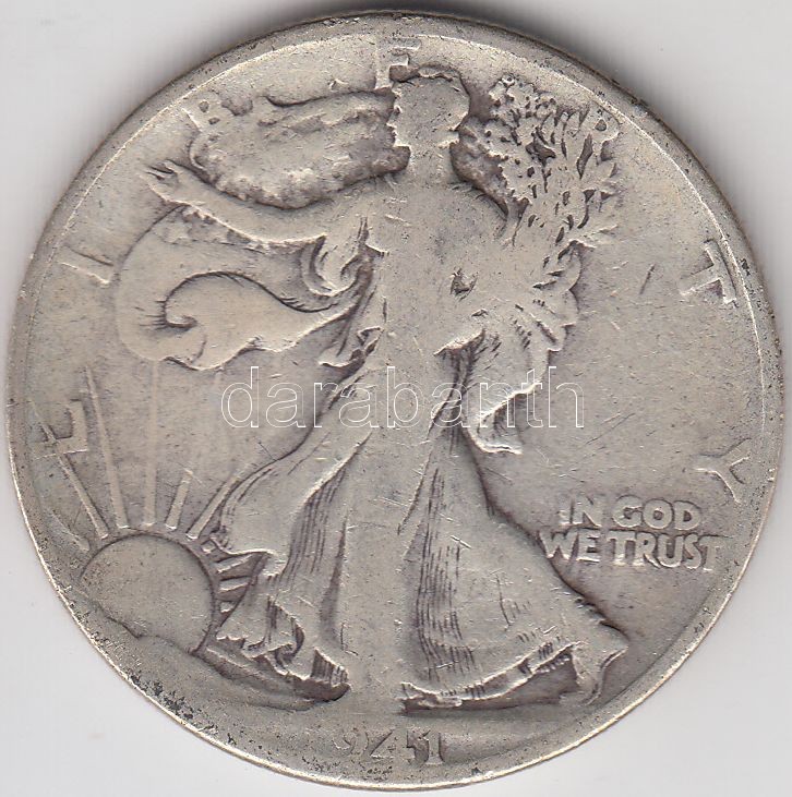 Amerikai Egyesült Államok 1941. 1/2$ Ag "Walking Liberty" T:... https://www.darabanth.com/de/203-Fernauktion/203.0/Numismatik/Weltweit-Munzen~13/Amerikai-Egyesult-Allamok-1941-12USD-Ag-Walking-Liberty-T3-3Cbr3EUSA-1941-12USD-Ag-Walking-Libe~II806582