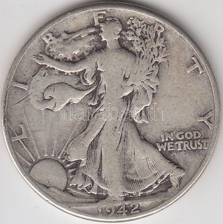 Amerikai Egyesült Államok 1942. 1/2$ Ag "Walking Liberty" T:... https://www.darabanth.com/de/203-Fernauktion/203.0/Numismatik/Weltweit-Munzen~13/Amerikai-Egyesult-Allamok-1942-12USD-Ag-Walking-Liberty-T3-3Cbr3EUSA-1942-12USD-Ag-Walking-Libe~II806584