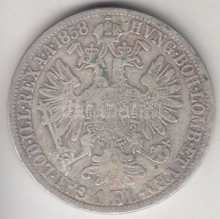 Austria 1858A 1 Fl... https://www.darabanth.com/de/203-Fernauktion/203.0/Numismatik/Weltweit-Munzen~13/Ausztria-1858A-1Fl-Ag-Ferenc-Jozsef-T3-3Cbr3EAustria-1858A-1-Florin-Ag-Franz-Joseph-CF~II808648