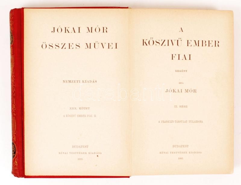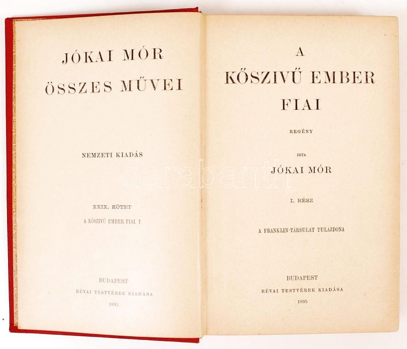 Jókai Mór: A kőszívű ember fiai I-II. Bp., 1895, Révai Testvérek. Kiadói aranyozott gerincű, festett egészvászon kötés, szép állapotban, néhány lap kijár.