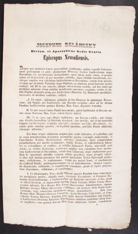 1810 Bélánszky József püspök hirdetmlénye latin nyelven 4p. https://www.darabanth.com/de/204-Fernauktion/204.0/Andere-Sammelgebiete/Drucksachen~400015/1810-Belanszky-Jozsef-puspok-hirdetmlenye-latin-nyelven-4p~II817904