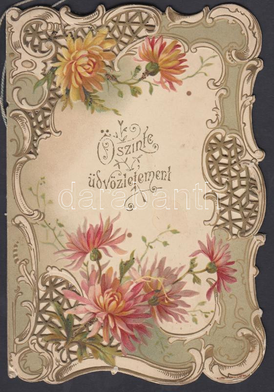 1899 Dombor litho üdvözlőlap (hajtásnál szakadás) / Embossed litho gre... https://www.darabanth.com/de/204-Fernauktion/204.0/Andere-Sammelgebiete/Drucksachen~400015/1899-Dombor-litho-udvozlolap-hajtasnal-szakadas-Embossed-litho-greeting-card-11x16-cm~II819901