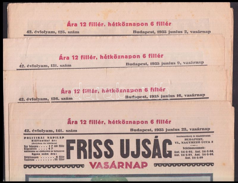 1934-35 9 db Friss Újság Vasárnapja magazinja színes magazin https://www.darabanth.com/de/204-Fernauktion/204.0/Andere-Sammelgebiete/Drucksachen~400015/1934-35-9-db-Friss-Ujsag-Vasarnapja-magazinja-szines-magazin~II802254