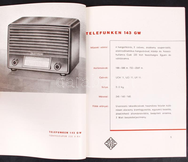 1943-1944 Telefunken rádió ismertető prospektus, 29p https://www.darabanth.com/de/204-Fernauktion/204.0/Andere-Sammelgebiete/Drucksachen~400015/1943-1944-Telefunken-radio-ismerteto-prospektus-29p~II816980