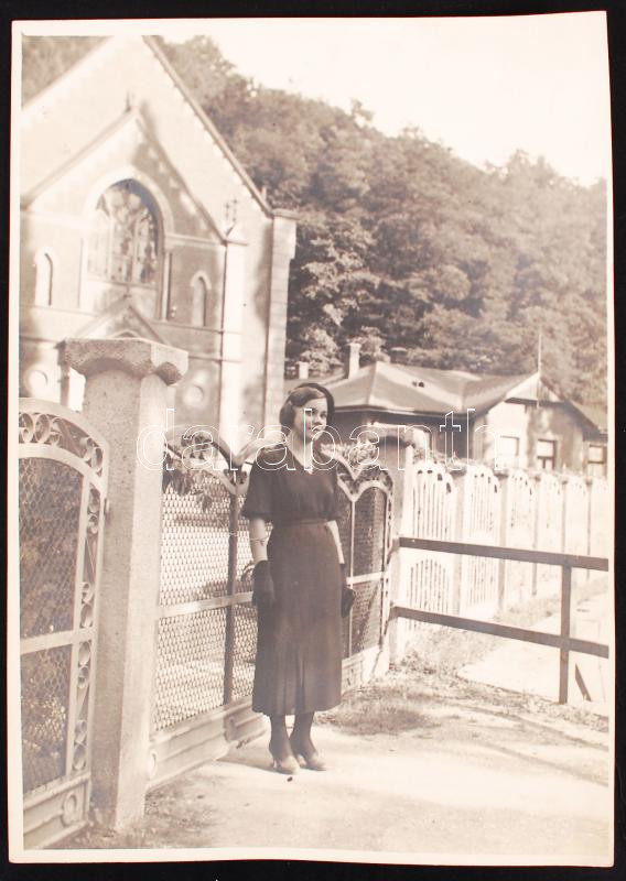 cca 1910-1920 Kapu előtt, ismeretlen hölgy fotója, 17x24 cm https://www.darabanth.com/de/204-Fernauktion/204.0/Andere-Sammelgebiete/Foto~400023/cca-1910-1920-Kapu-elott-ismeretlen-holgy-fotoja-17x24-cm~II819996