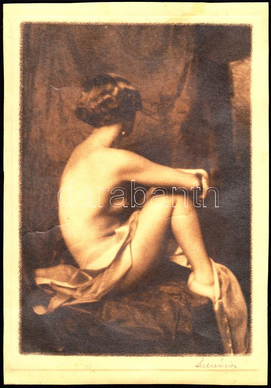 cca 1920 Festészetutánzó stílusban komponált aktfotó, művészfólián keresztül másolva, aláírva, de nem olvashatóan, két kisebb törésvonallal a felületén, 16x12 cm