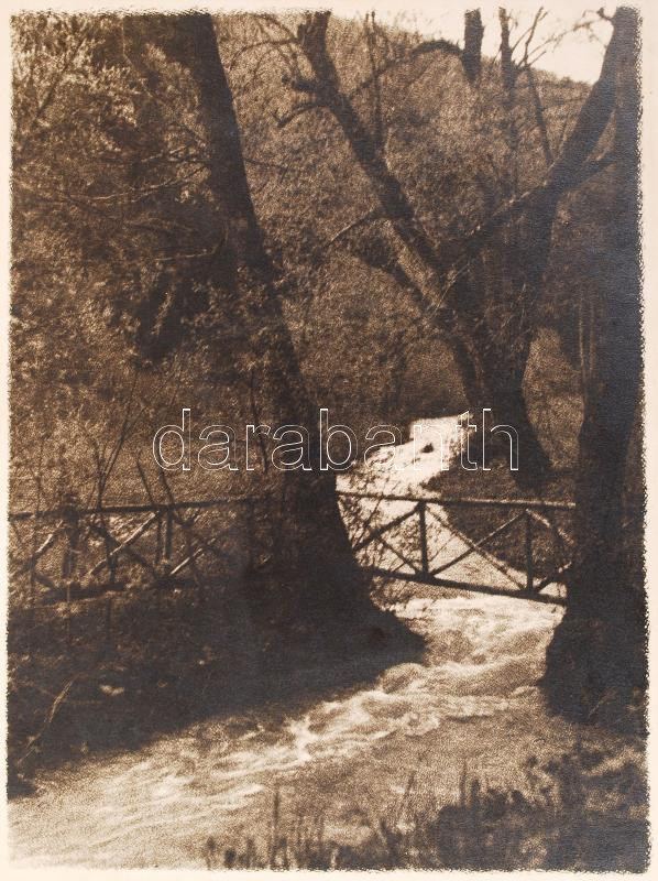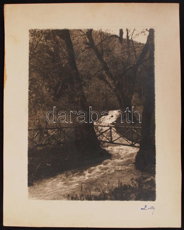 cca 1930-1940 Zoltay: Erdei patak, vintage fotóművészeti alkotás festészet utánzó stílusban, művészfólián keresztül másolva, képméret 23x17 cm, papírméret 29x23 cm