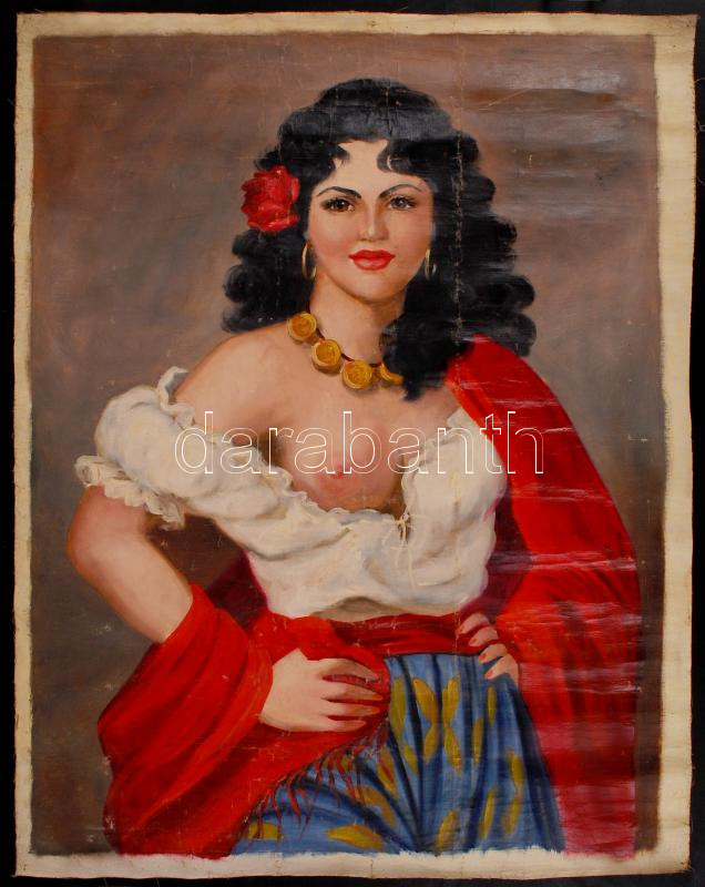 Jelzés nélkül: Lengén öltözött cigány lány. Olaj, vászon, kopott, felc... https://www.darabanth.com/de/204-Fernauktion/204.0/Andere-Sammelgebiete/Gemalde-und-Grafiken~400001/Jelzes-nelkul-Lengen-oltozott-cigany-lany-Olaj-vaszon-kopott-felcsavarva-80C39760-cm~II817727