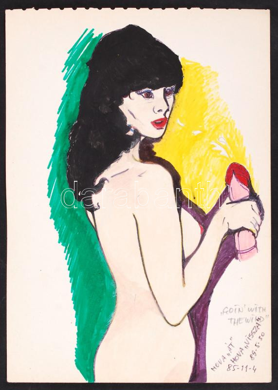 Beschreibung: Jelzés nélkül: Pornográf grafika. Papír, vegyes technika, 17x23 cm