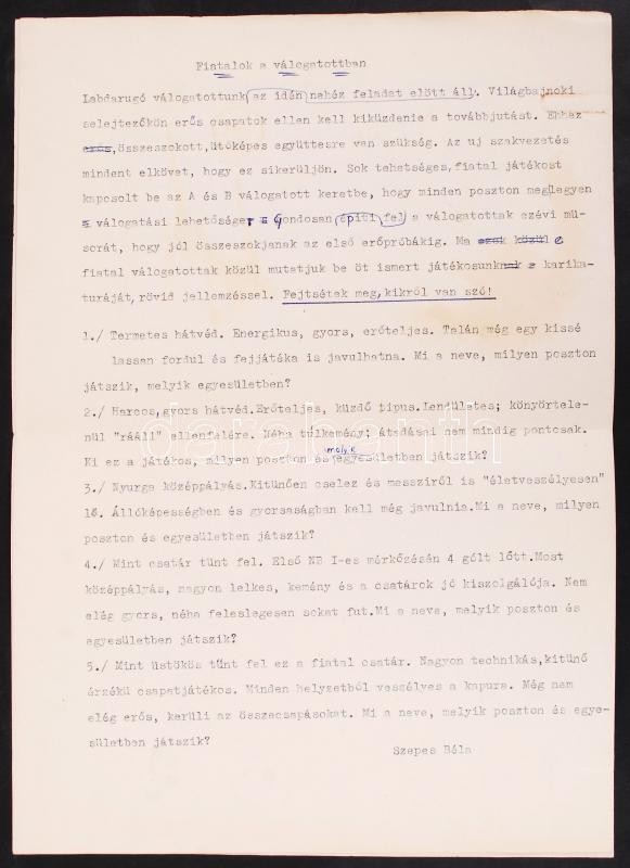 Beschreibung: Szepes Béla 5 db karikatúra közismert személyekről, 13x20 cm, és egy általa írt cikk.