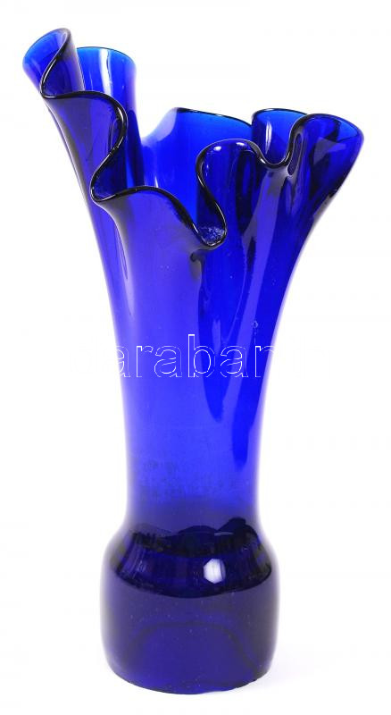 Fazoletto kék üvegváza hajlított íves díszítéssel, kis karcolásokkal, ... https://www.darabanth.com/de/204-Fernauktion/204.0/Andere-Sammelgebiete/Glaser~400007/Fazoletto-kek-uvegvaza-hajlitott-ives-diszitessel-kis-karcolasokkal-m-31-cm~II813921