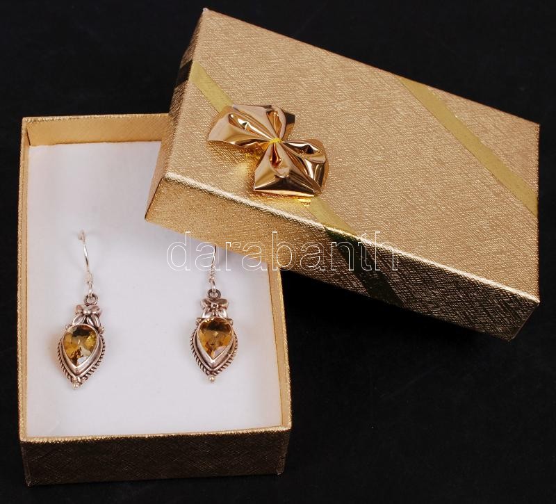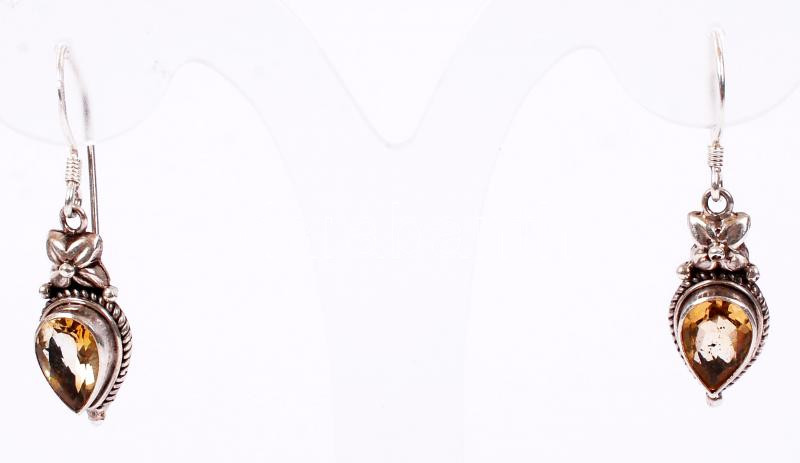 Beschreibung: Ezüst fülbevalópár befoglalt citrin díszítéssel, jelzett, br: 4,3 g