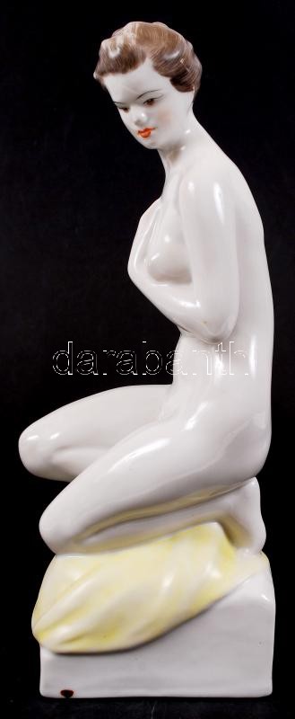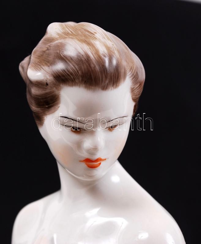 Beschreibung: Hollóházi porcelán, kézzel festett női akt szobor, hibátlan, jelzett, 30 cm