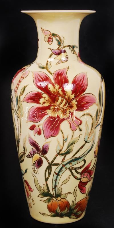 Beschreibung: Zsolnay gazdagon díszített virágos váza, kézzel festett, jelzett, hibátlan, m:26,5 cm