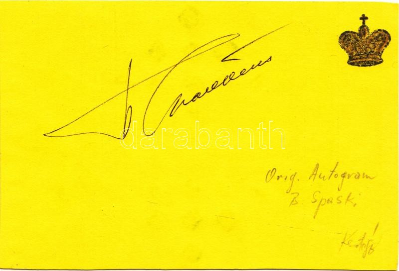 B. Spaski sakkmester aláírt lap / Chess master autograph signed card https://www.darabanth.com/de/204-Fernauktion/204.0/Andere-Sammelgebiete/Signatur~400020/B-Spaski-sakkmester-alairt-lap-Chess-master-autograph-signed-card~II817757