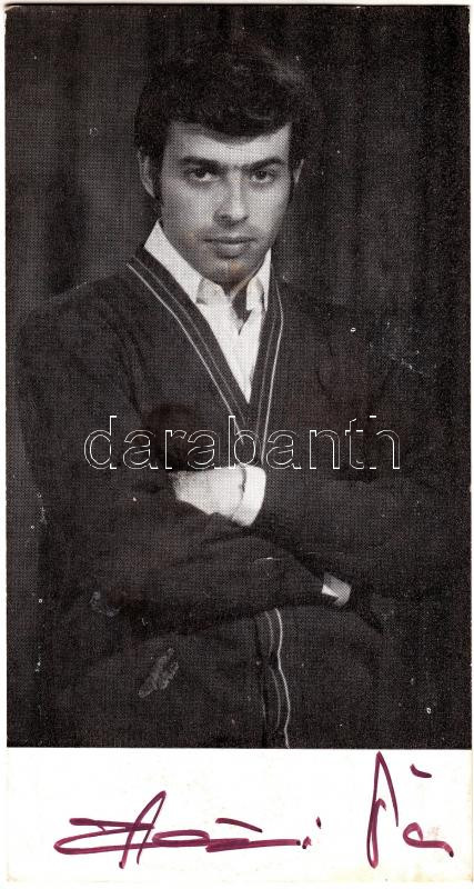 Beschreibung: Szécsi Pál (1944-1977) énekes saját kezű aláírása az őt ábrázoló fotón
