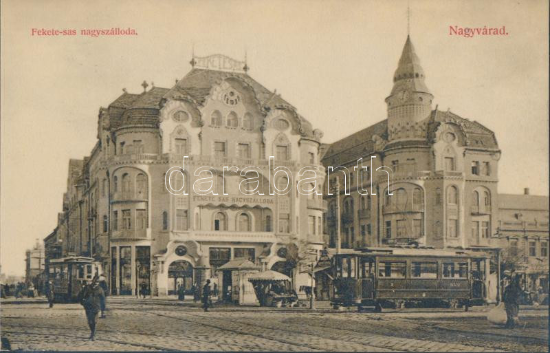 Nagyvárad Fekete Sas Nagyszálloda, villamos; Sebő Imre kiadása / hotel... https://www.darabanth.com/de/204-Fernauktion/204.0/Ansichtskarten/Siebenburgen~600006/Nagyvarad-Fekete-Sas-Nagyszalloda-villamos-Sebo-Imre-kiadasa-hotel-tram~II818718