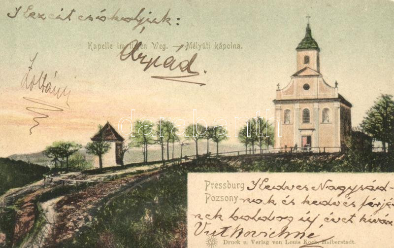 Pozsony, Pressburg; Mélyúti kápolna / Kapelle im tiefen Weg / chapel https://www.darabanth.com/de/204-Fernauktion/204.0/Ansichtskarten/Slowakei~600007/Pozsony-Pressburg-Melyuti-kapolna-Kapelle-im-tiefen-Weg-chapel~II820195