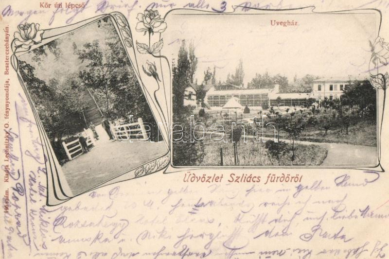 Beschreibung: Szliácsfürdő, Art Nouveau floral; kiadja Lechnitzky O. fénynyomdája