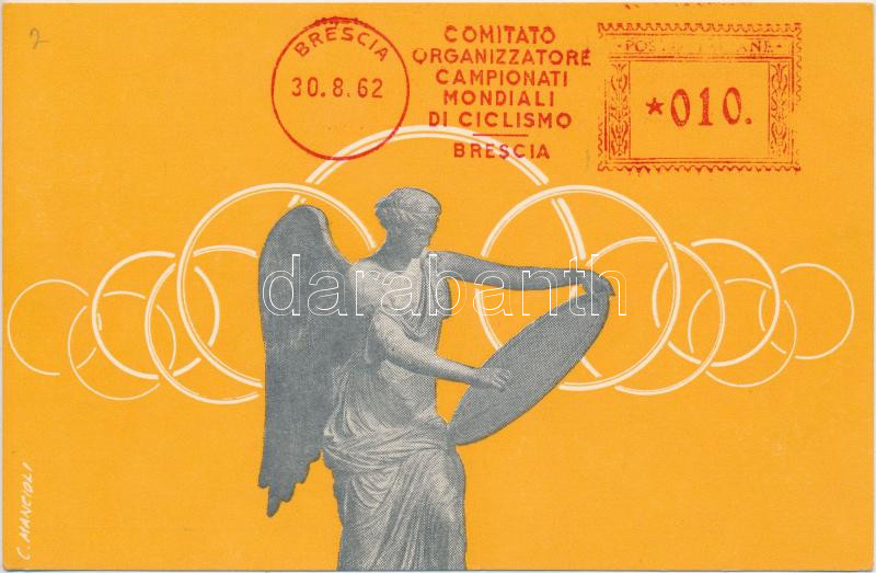 Beschreibung: 1962 Comitato Organizzatore Campionati Mondiali di Ciclismo, servizio filatelico, Brescia s: Mancioli