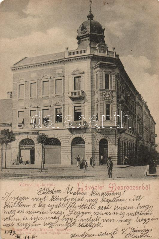 1899 Debrecen, városi új bérház, Mendelovits és Gáspár Géza üzlete, Po... https://www.darabanth.com/de/204-Fernauktion/204.0/Ansichtskarten/Ungarn~600005/1899-Debrecen-varosi-uj-berhaz-Mendelovits-es-Gaspar-Geza-uzlete-Pongrac-Geza-kiadasa~II813292