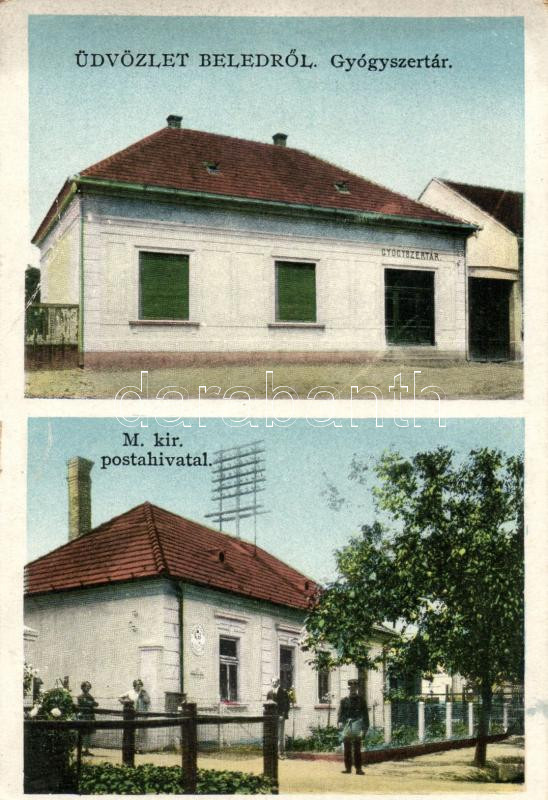 Beschreibung: Beled, Gyógyszertár, postahivatal (Rb)