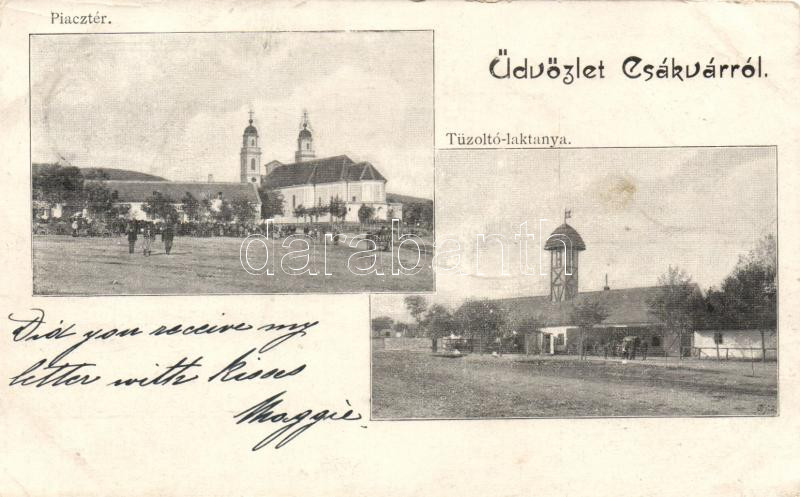 Csákvár, Piactér, Tűzoltó laktanya (levágott / cut) https://www.darabanth.com/de/204-Fernauktion/204.0/Ansichtskarten/Ungarn~600005/Csakvar-Piacter-Tuzolto-laktanya-levagott-cut~II816469