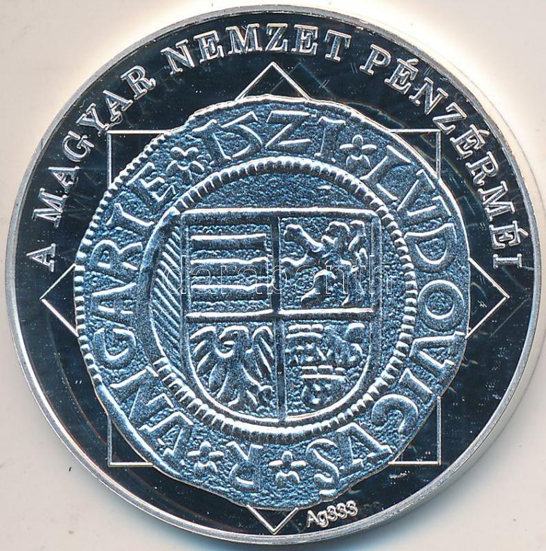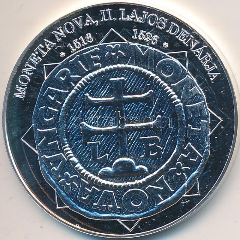 Beschreibung: DN "A magyar nemzet pénzérméi - Moneta Nova, II. Lajos denárja 1516-1526." Ag (0,333) emlékérem (15g/35mm) T:PP tanúsítvánnyal!