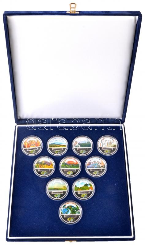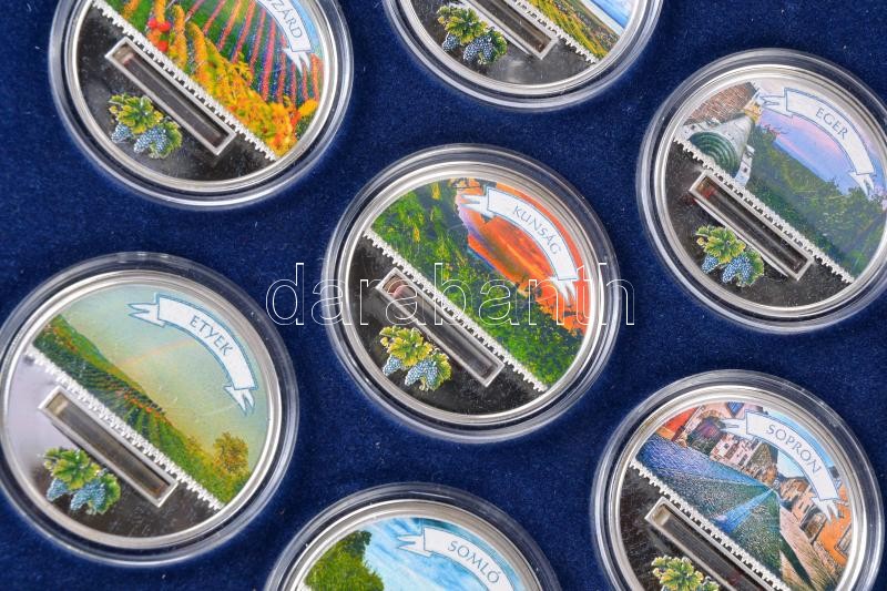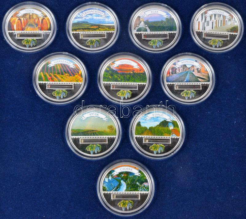DN. "Magyarország Borvidékei" multicolor mini üvegcsés ezüstözött emlékérem sorozat komplett 10db-os szettje dísztokban és tanúsítvánnyal (33mm) T:PP Csak 500db!