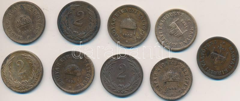 1893-1903. 2f (9x) T:vegyes https://www.darabanth.com/de/204-Fernauktion/204.0/Numismatik/Ungarische-Munzen~10/1893-1903-2f-9x-Tvegyes~II815563