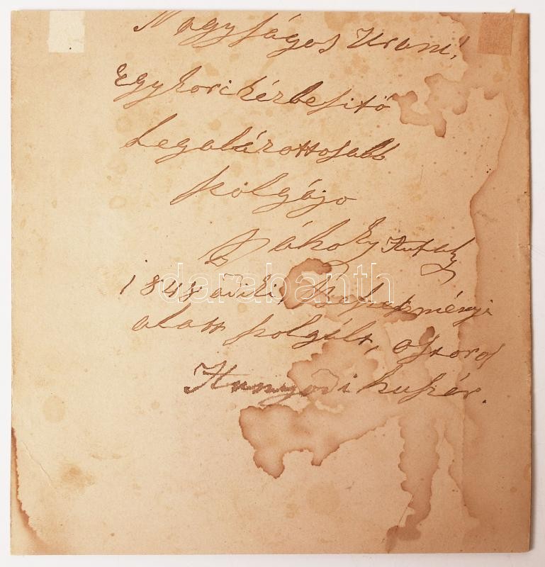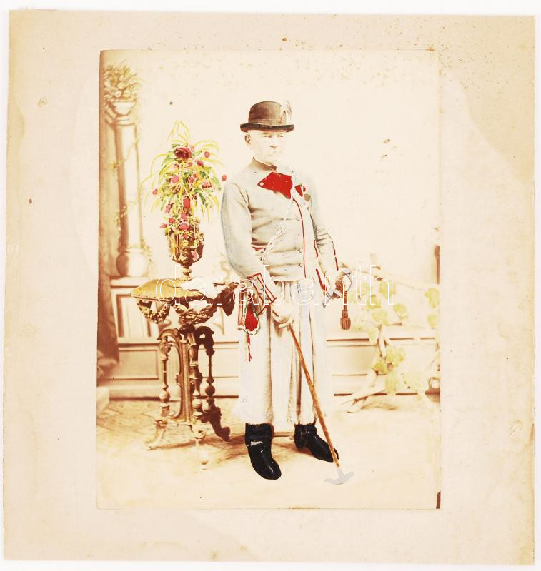 cca 1860-1870 Dálnoky Antal fokossal, karddal, 1848-as szabadságharcos, aki Hunyadi huszárként szolgált, feliratozott, színezett fénykép, 14x10 cm, karton 16x16 cm
