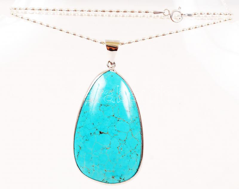 Beschreibung: Türkiz medál ezüst (Ag) láncon, jelzett, 4,5 g /