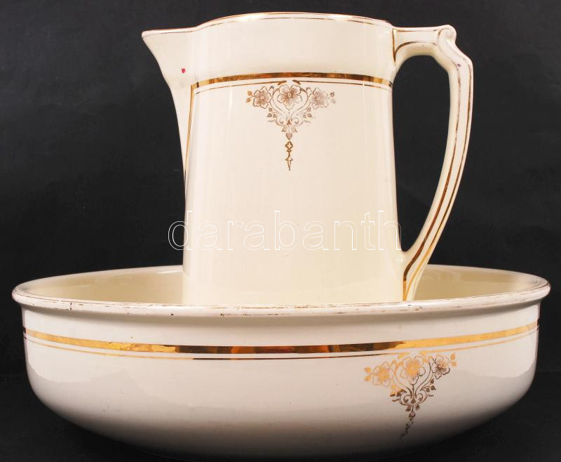 Régi fajansz mosdótál és kancsó / Fayance washing set https://www.darabanth.com/de/205-Fernauktion/205.0/Andere-Sammelgebiete/Porzellan~10/Regi-fajansz-mosdotal-es-kancso--Fayance-washing-set~II826374